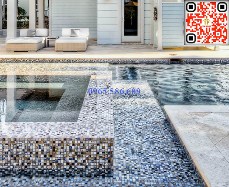 » Tranh mosaic trang trí bể bơi :Tranh mosaic có thể ghép pattern ốp lát bể bơi với các hình con vật dưới nước như cá heo, rùa, tôm… Bên cạnh đó, sử dụng tranh mosaic trang trí ngoại cảnh quanh bể bơi cũng giúp tổng thể không gian đẹp hơn rất nhiều….