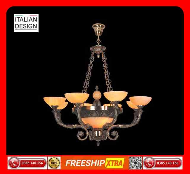 Đèn chùm cổ điển Châu Âu đồng chao đá ngọc trai CD-188