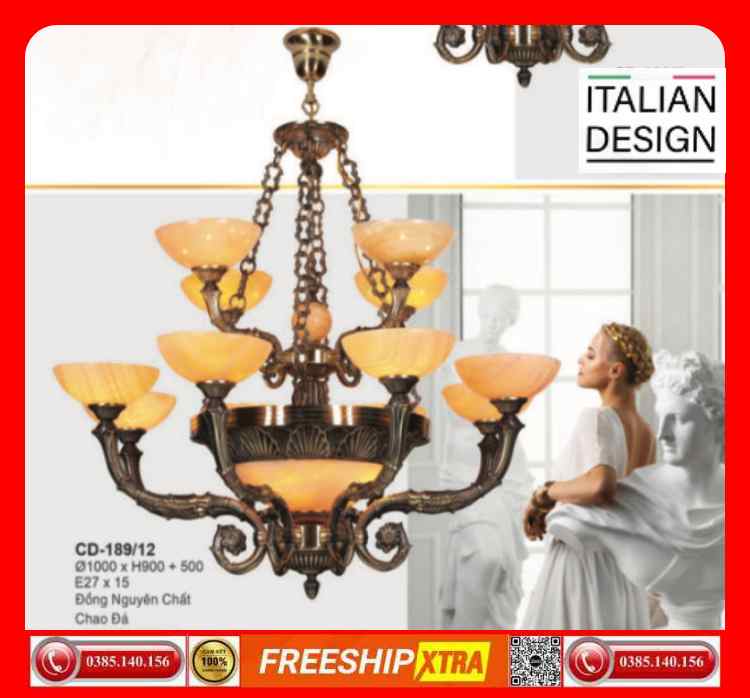Đèn chùm cổ điển Châu Âu đồng chao đá ngọc trai CD-189