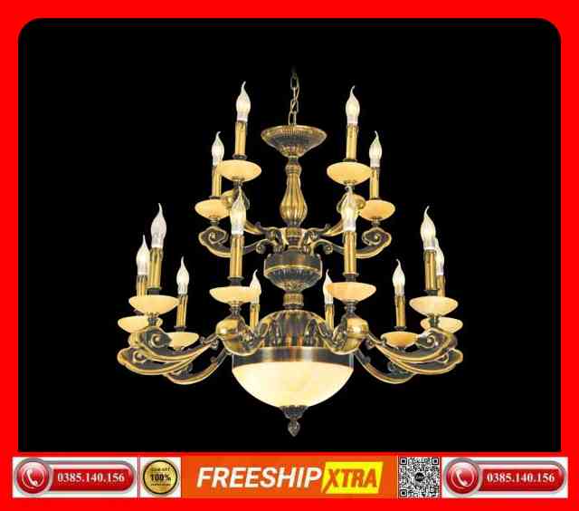 Đèn chùm cổ điển Châu Âu đồng chao đá ngọc trai CD-763