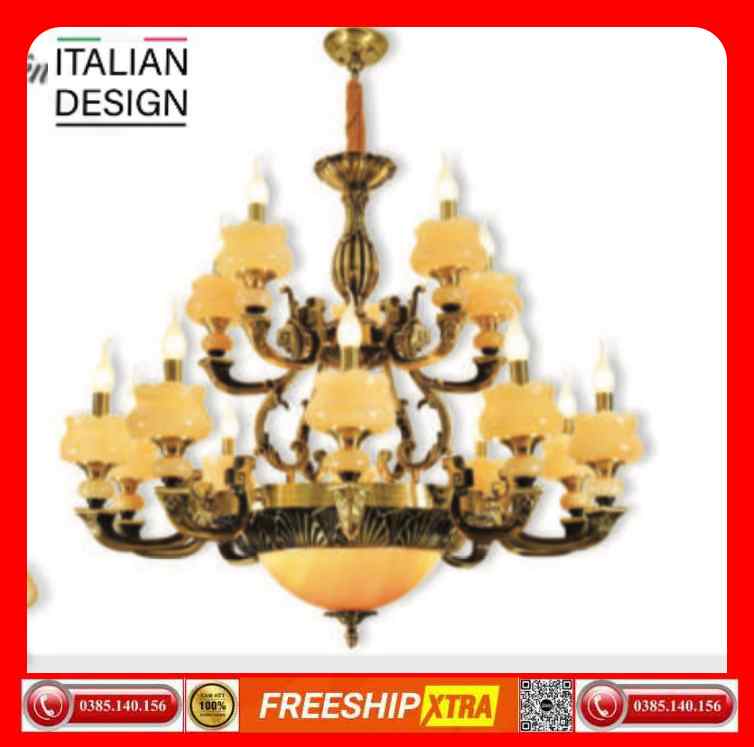 Đèn chùm cổ điển Châu Âu đồng chao đá ngọc trai CD-774