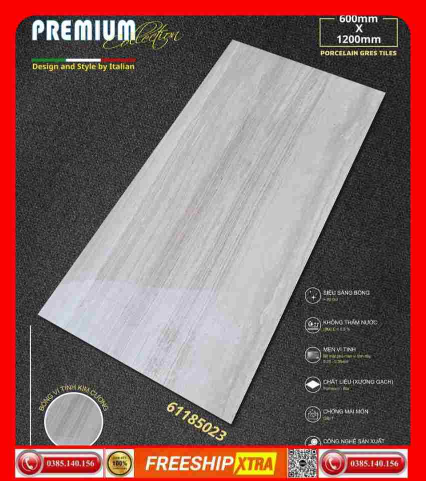 Gạch 60×120 Apodio 61185023 bóng kính sọc ngang màu xám