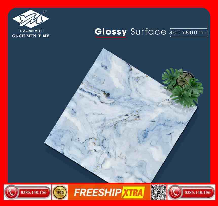 Gạch 80×80 Ý Mỹ Pierre Cardin P88018 màu xanh biển