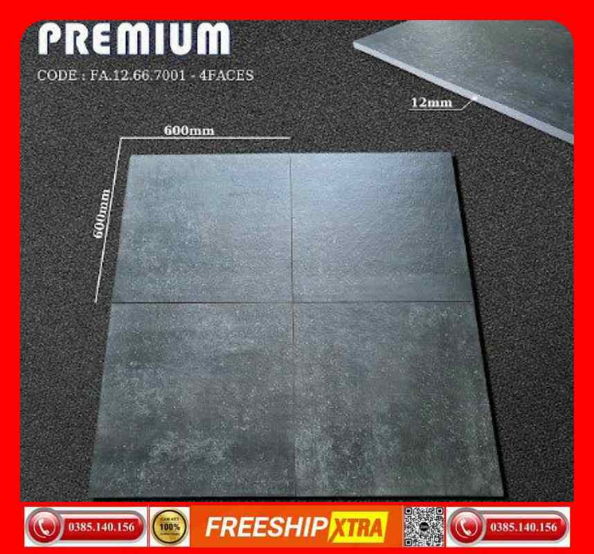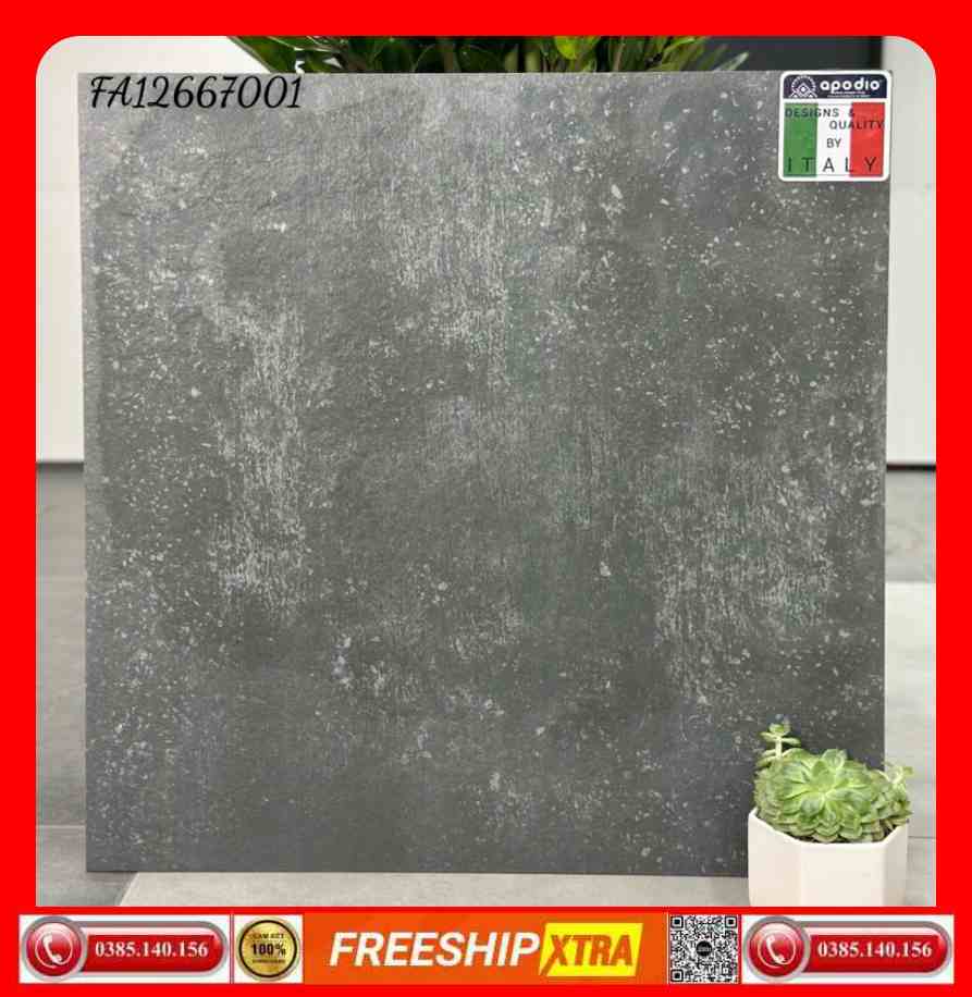 Gạch lát 60×60 APODIO FA-12667001 đá nhám sần dày 12 mm xám xi măng