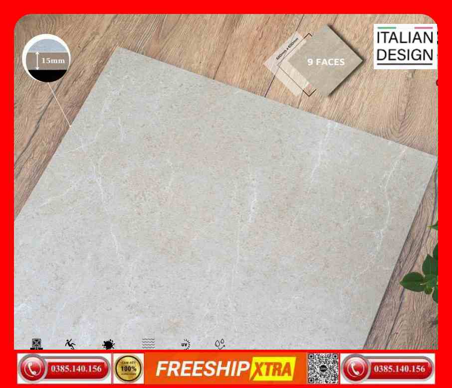 Gạch lát 60×60 APODIO MG-509 đá nhám sần dày 15 mm xám nhạt