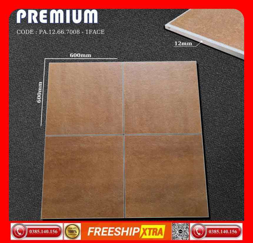 Gạch lát sân 60×60 APODIO PA-12667008 đá sần nâu đất nhà cổ dày 12 mm