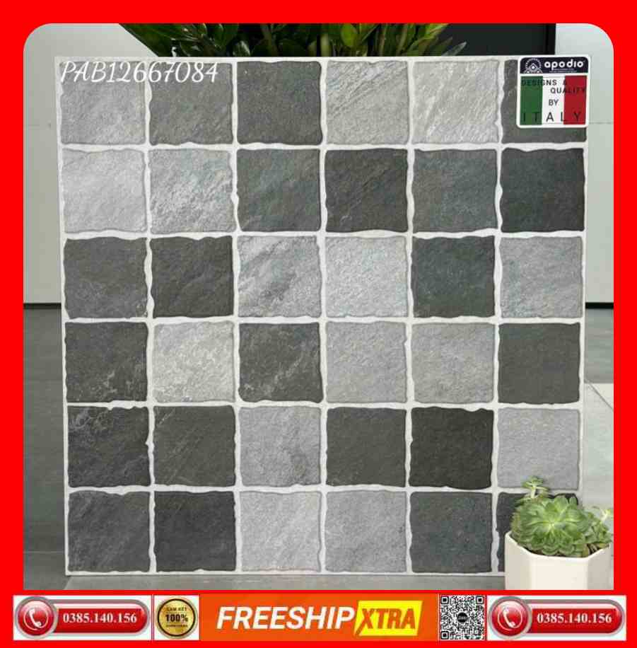 Gạch lát sân 60×60 APODIO PA-12667084 đá sỏi nhám dày 12 mm xám