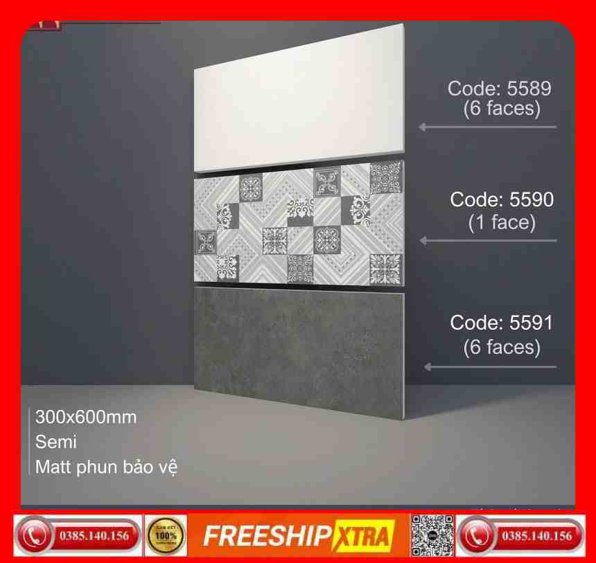 Gạch ốp 30×60 Á Mỹ 5589-5590-5591 màu xám